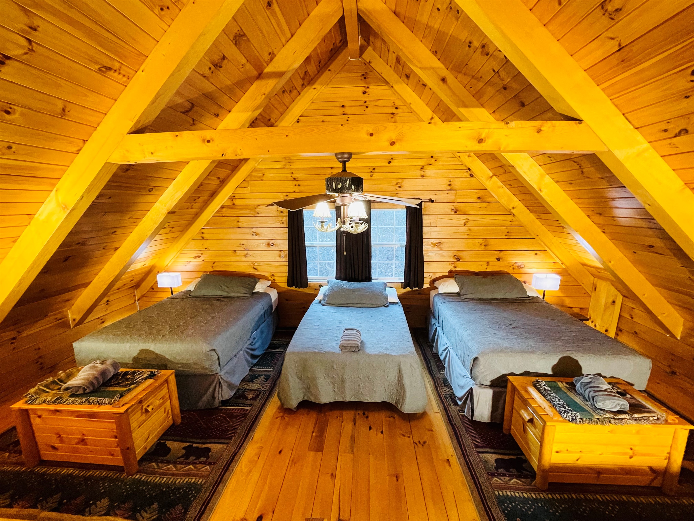 2 Bedrooms • 1 Bathroom 1 Bath • Sleeps 4-6What is the only way to top off a wonderful day of hiking through what Forbes Magazine has called “One of the Best travel destinations in the World” - a relaxing evening at the Breath of Heaven Cabin! Just minutes away from all of the breathtaking caves and trails of Hocking Hills, the majestic log cabin of your dreams awaits you nestled within 14 secluded acres. Wind through the woods, just past the pond, and up the hill to your welcoming front porch, and rest awhile in the antique rocking chairs. Enjoy a meal with your family and admire the magnificent colors of Fall from the outdoor family room overlooking the property. In the evening, relax by a crackling fire in the gorgeous family room adorned with knotty pine walls, vaulted ceiling and rustic wooden beams, or soak in the hot tub. Make new memories and reminisce about old ones while stargazing and roasting marshmallows around the smokeless stone fire pit, or just taking a quiet stroll around the property. Why settle for stuffy old hotel rooms, when you could experience the “Breath of Heaven” Log Cabin in the hills?
